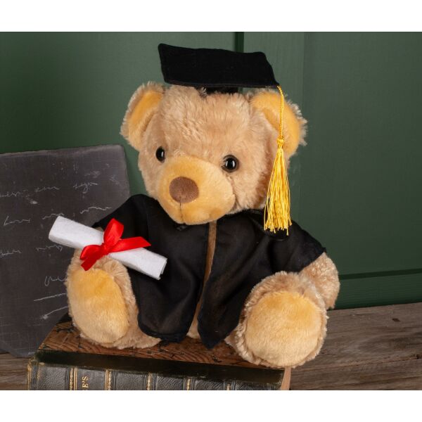 Traditional bear wearing graduation cap with tassel and gown. Complies with EN71 regulations. Not suitable for children under 36 months. Traditional bear wearing graduation cap with tassel and gown. Complies with EN71 regulations. Not suitable for children under 36 months.